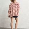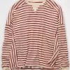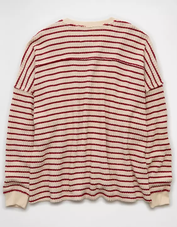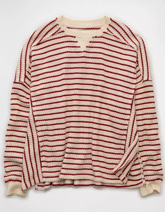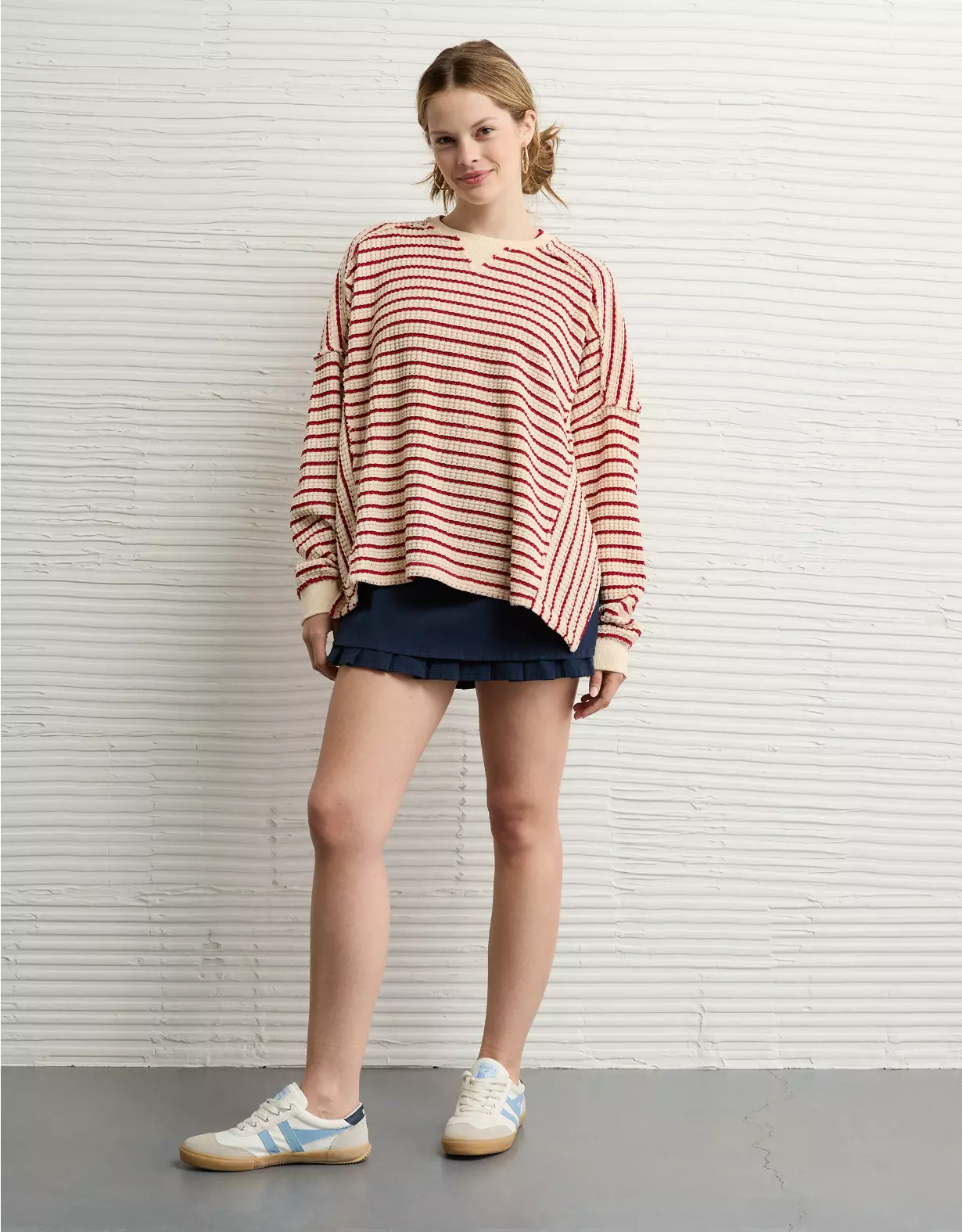 AE Big Hug Crew Neck Waffle Sweatshirt Berry | NEW WOMENS