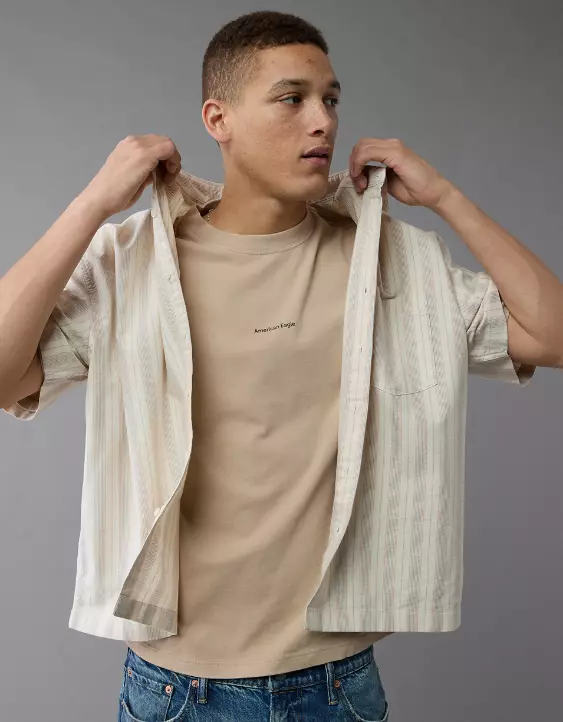 AE Boxy Logo Graphic T-Shirt Khaki | MENS BESTSELLERS
