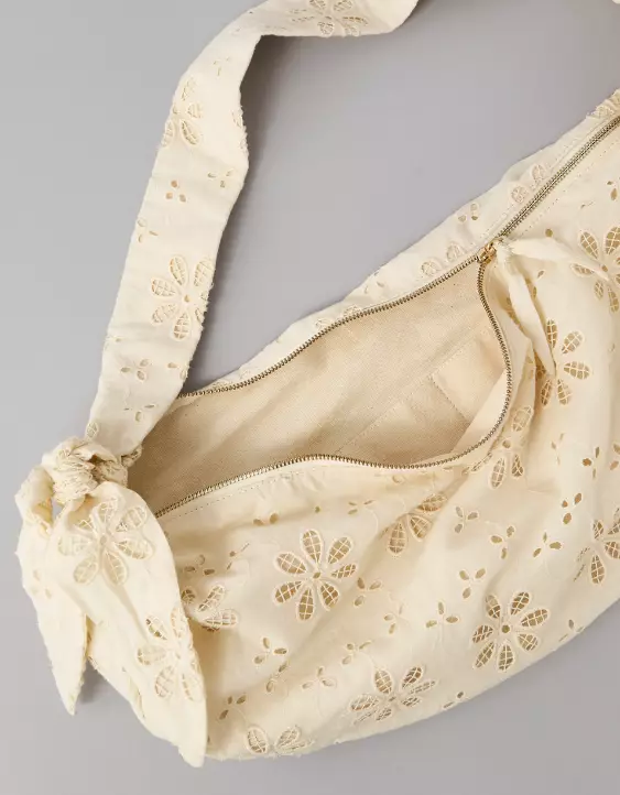 AE Eyelet Slouchy Hobo Bag Ecru Denim | ACCESSORIES BELTS & BAGS
