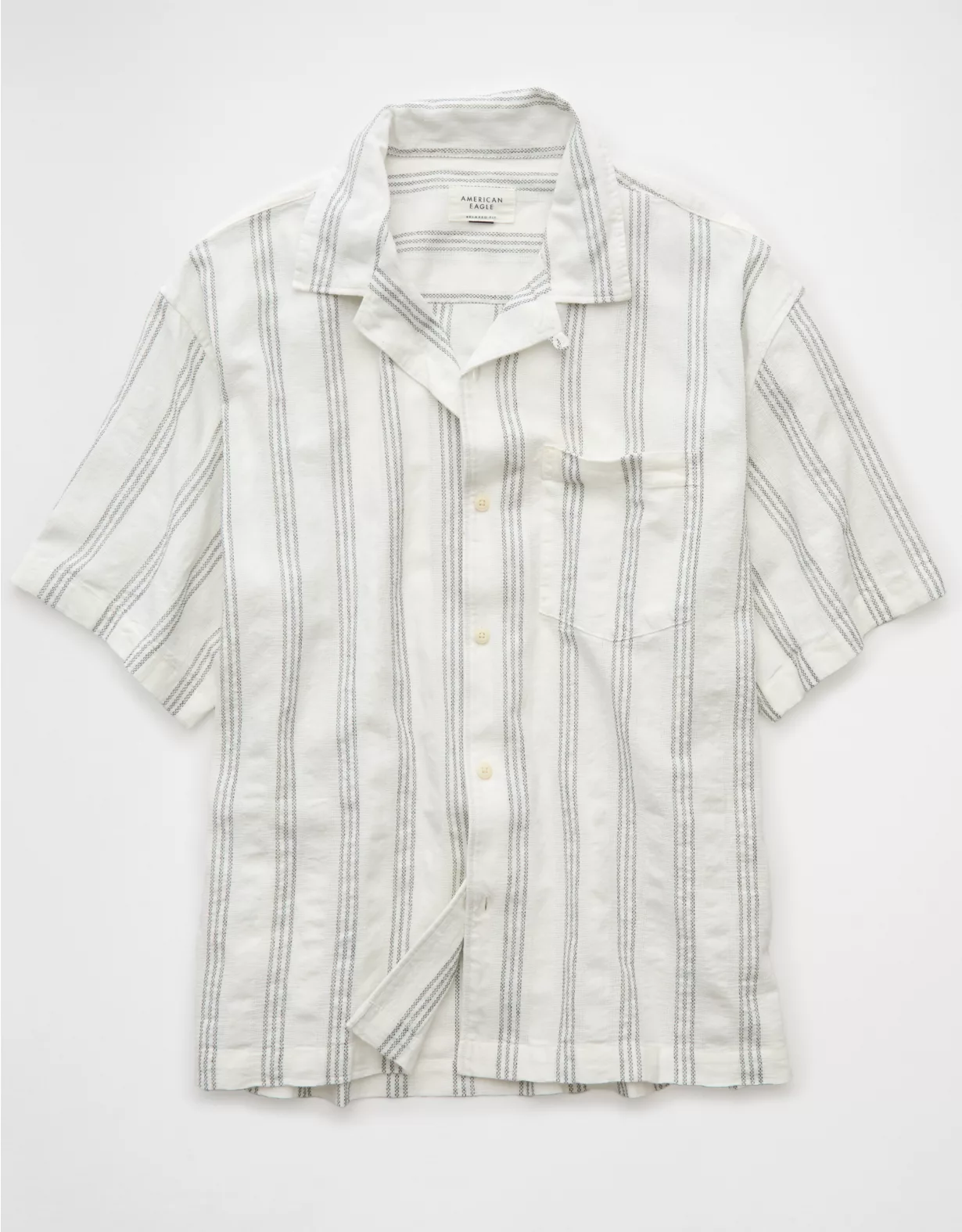 Be the first to review “AE Poolside Linen-Blend Striped Button-Up Shirt White | MENS SHIRTS” Cancel reply