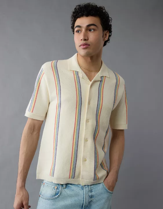 Be the first to review “AE Pride Weekend Striped Button-Up Sweater Polo Shirt Cream | MENS POLOS” Cancel reply