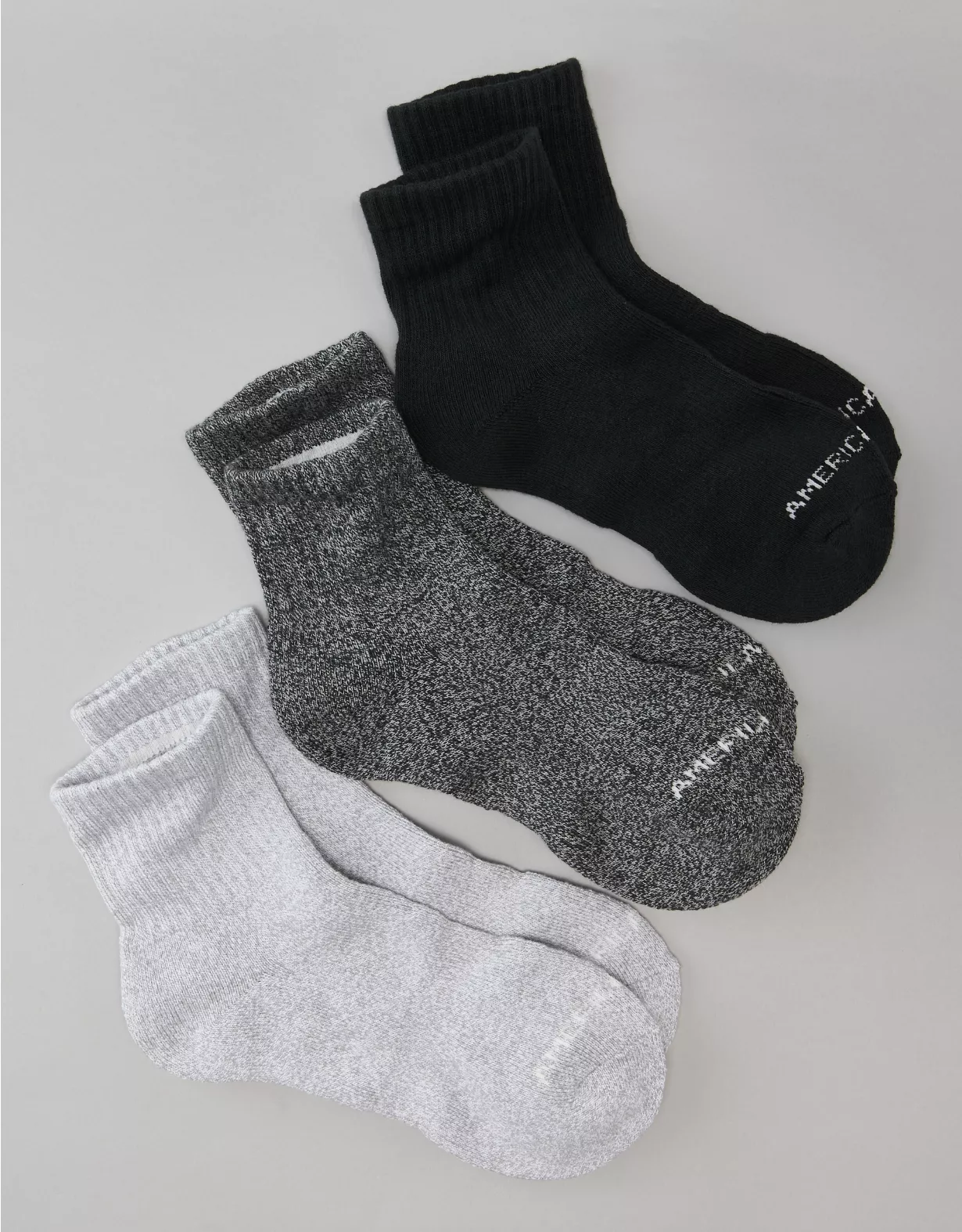 AE Quarter Crew Socks 3-Pack Dark Heather Gray | ACCESSORIES SOCKS