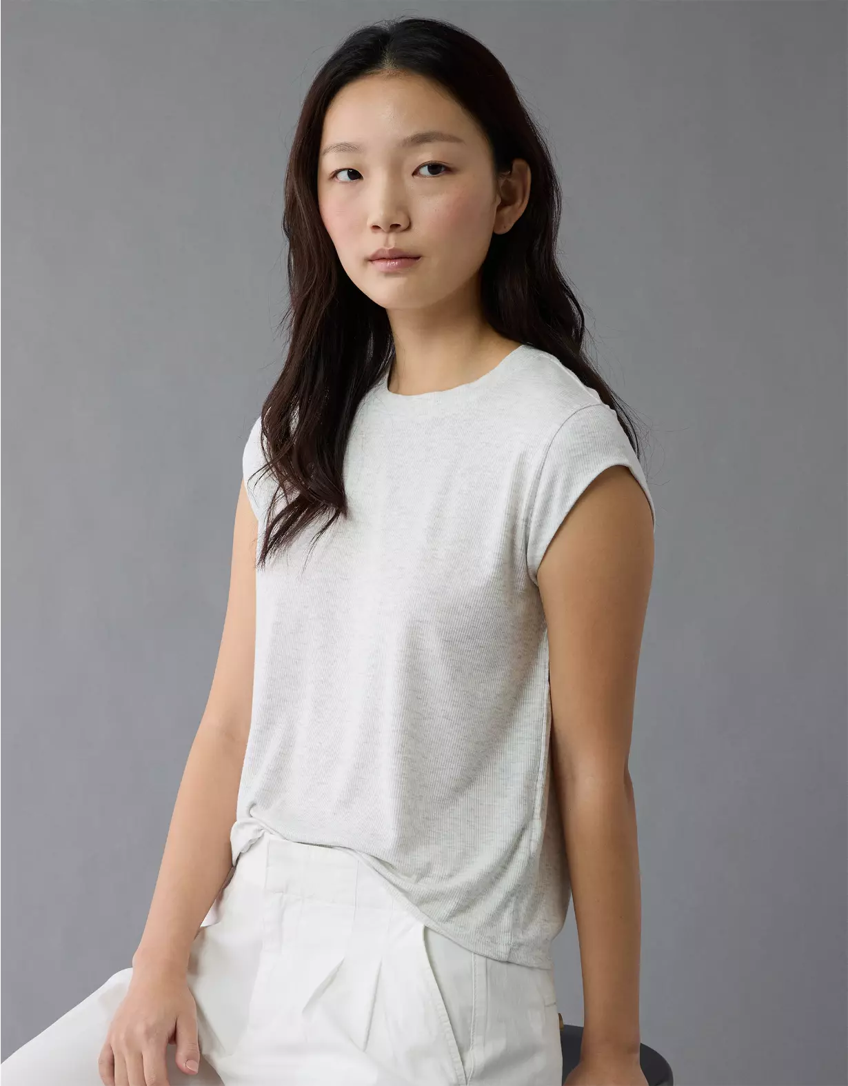 AE Soft & Sexy Muscle T-Shirt Light Heather Gray | WOMENS BESTSELLERS