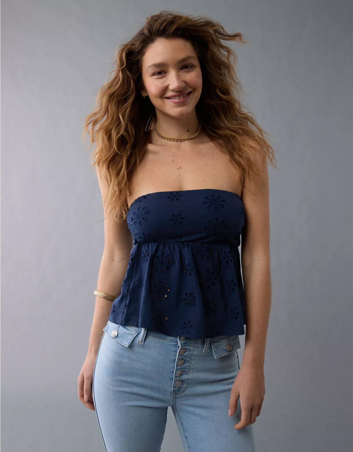 AE Sunchaser Knit Babydoll Tube Top Navy | WOMENS TANK
