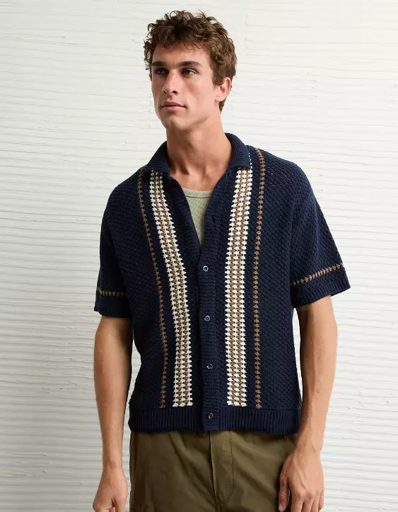 Be the first to review “AE Weekend Crochet Button-Up Sweater Polo Shirt Navy | MENS POLOS” Cancel reply