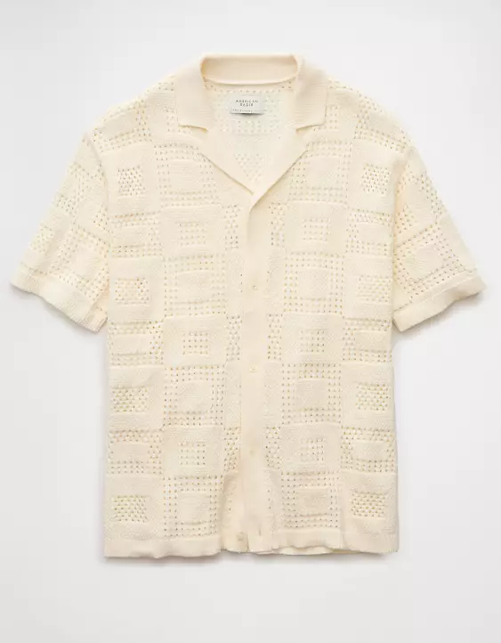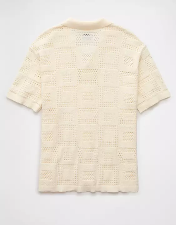 Be the first to review “AE Weekend Textured Checkerboard Button-Up Sweater Polo Shirt Cream | MENS POLOS” Cancel reply