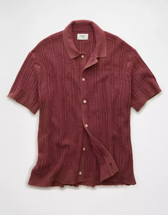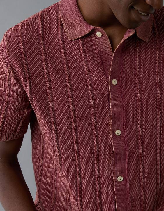 Be the first to review “AE Weekend Washed Button-Up Sweater Polo Shirt Wine | MENS POLOS” Cancel reply