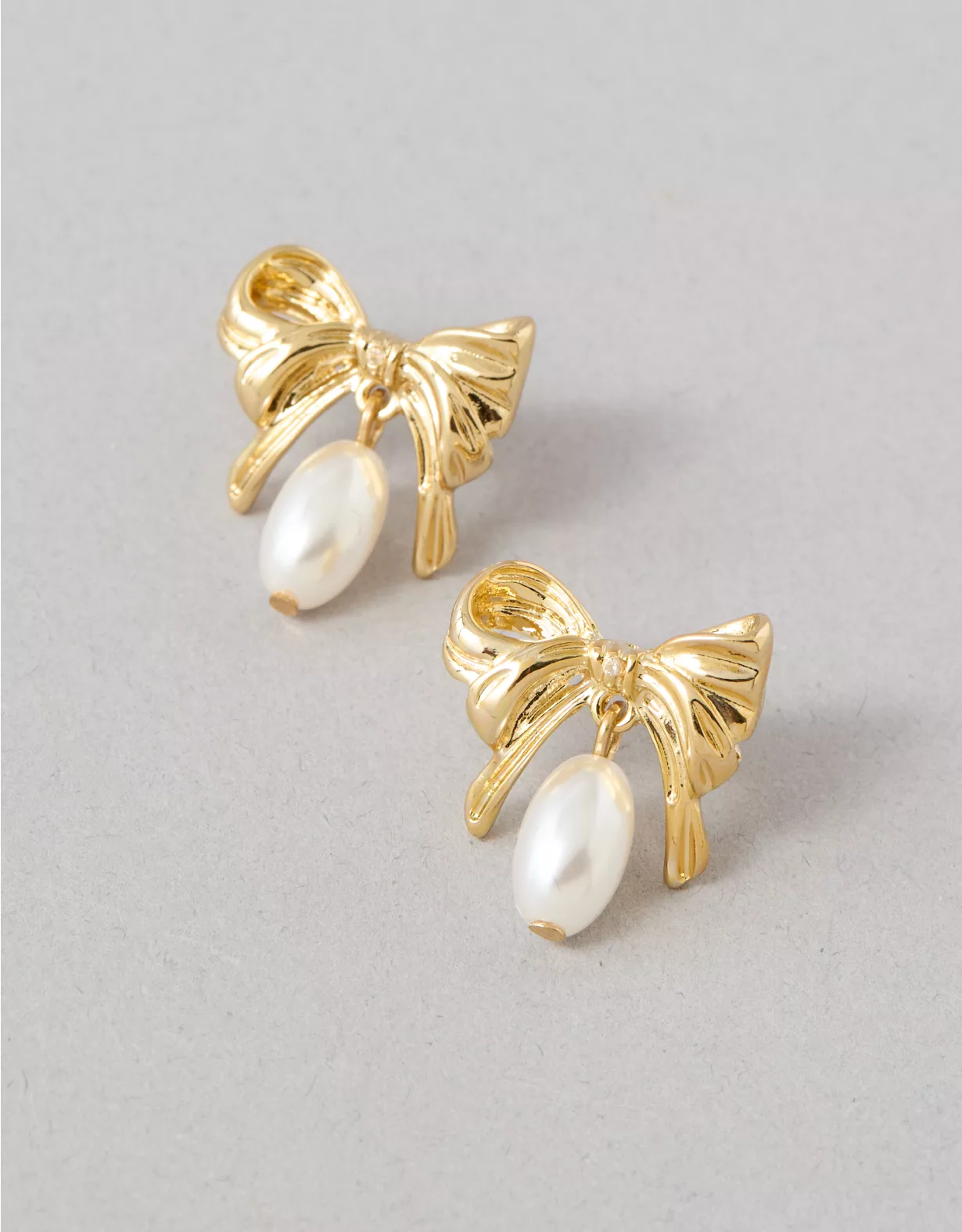 AEO Bow Pearl Earrings Gold | ACCESSORIES JEWELRY
