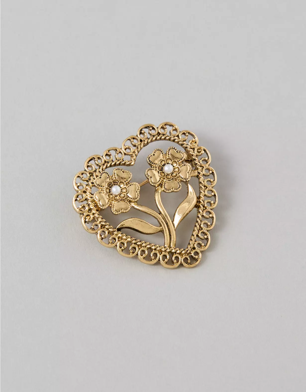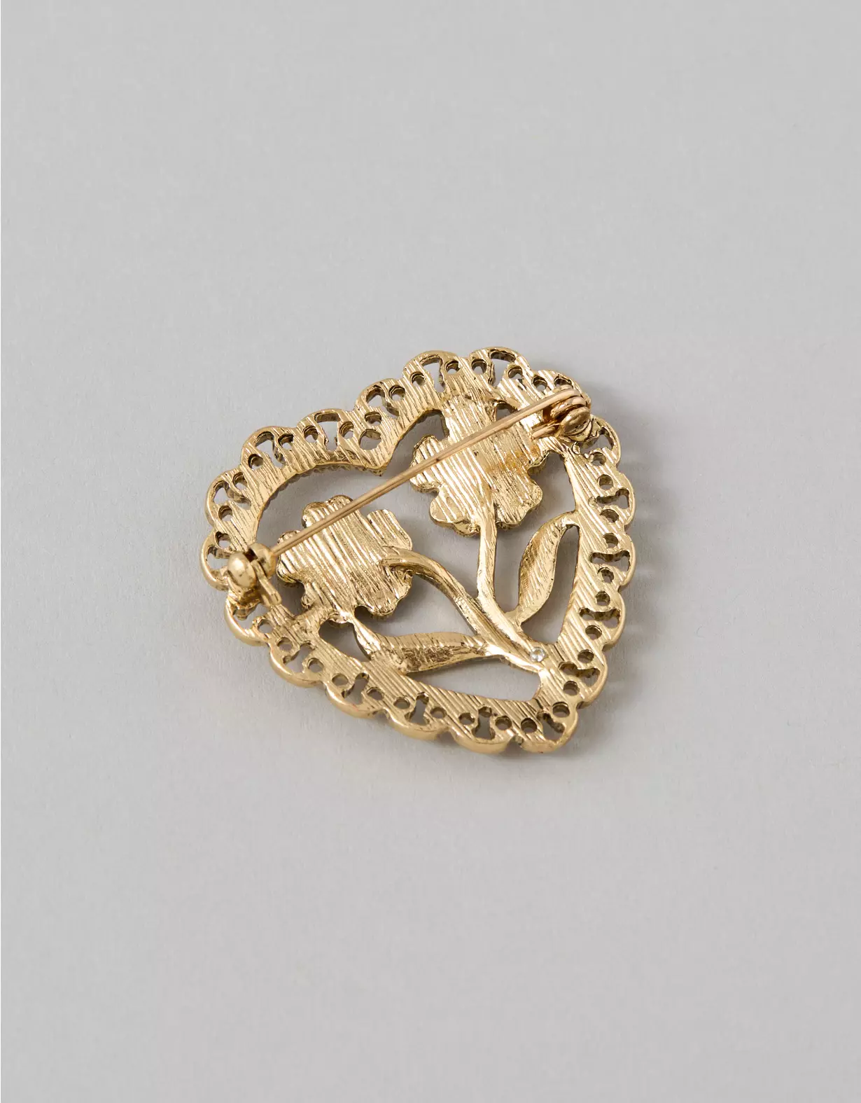 AEO Gold-Toned Heirloom Heart Brooch Gold | ACCESSORIES BELTS & BAGS