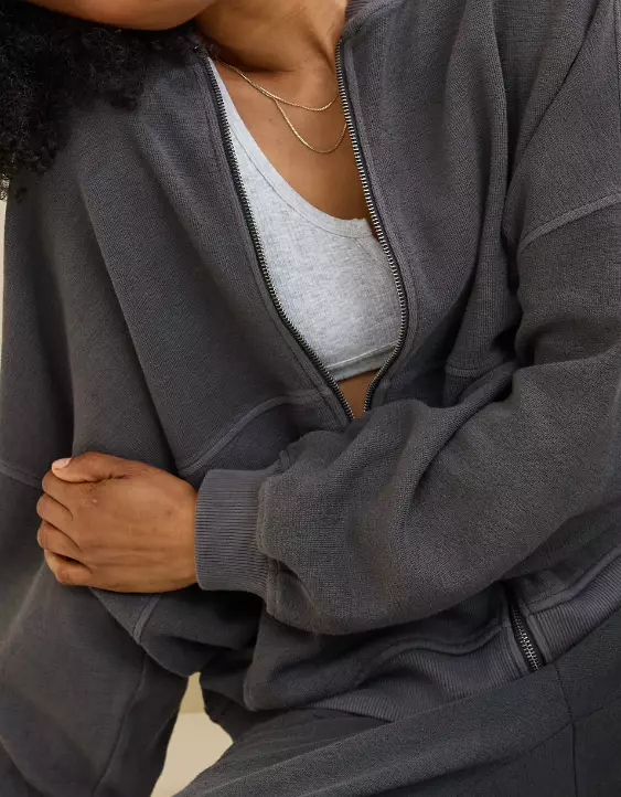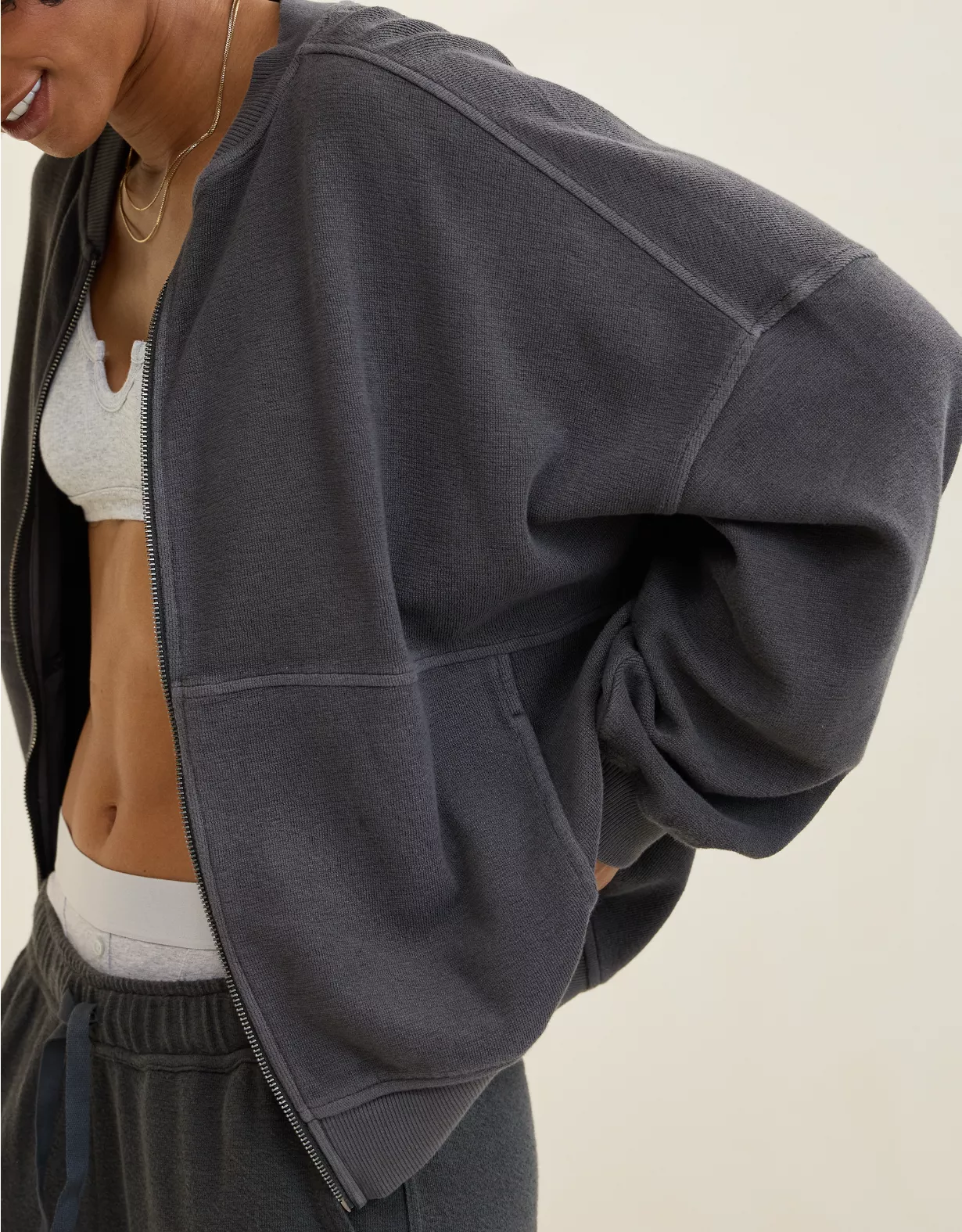 Aerie Full Zip Bomber Smoked Gray | WOMENS SKIRTS