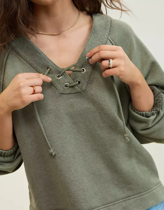 Be the first to review “Aerie Lace Up Sweatshirt Olive Fun | WOMENS HOODIES” Cancel reply
